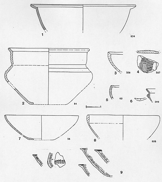 2 à 7 : Grande Sépulture (sondage E sauf n°7 : sondage F) ;