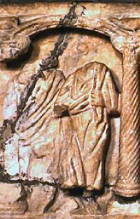courte. C'est Saint Pierre qui enseigne un rouleau (volumen) à la main.