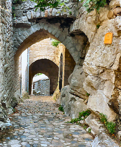 uniquement parcouru de ruelles étroites, les calades, couvertes de loin